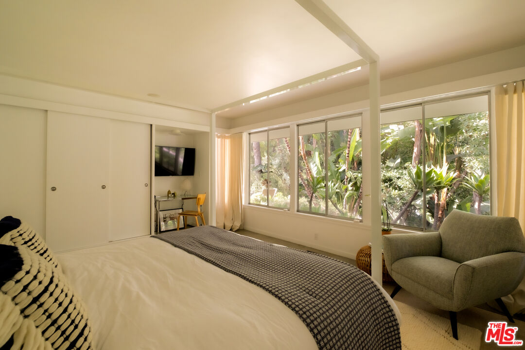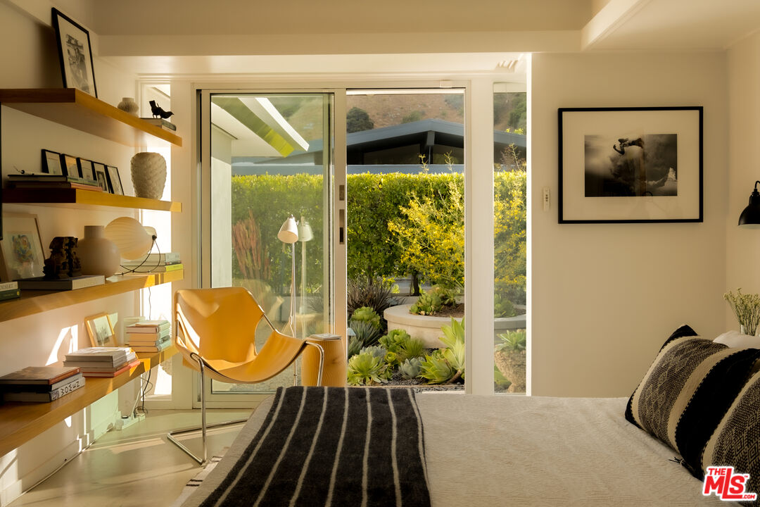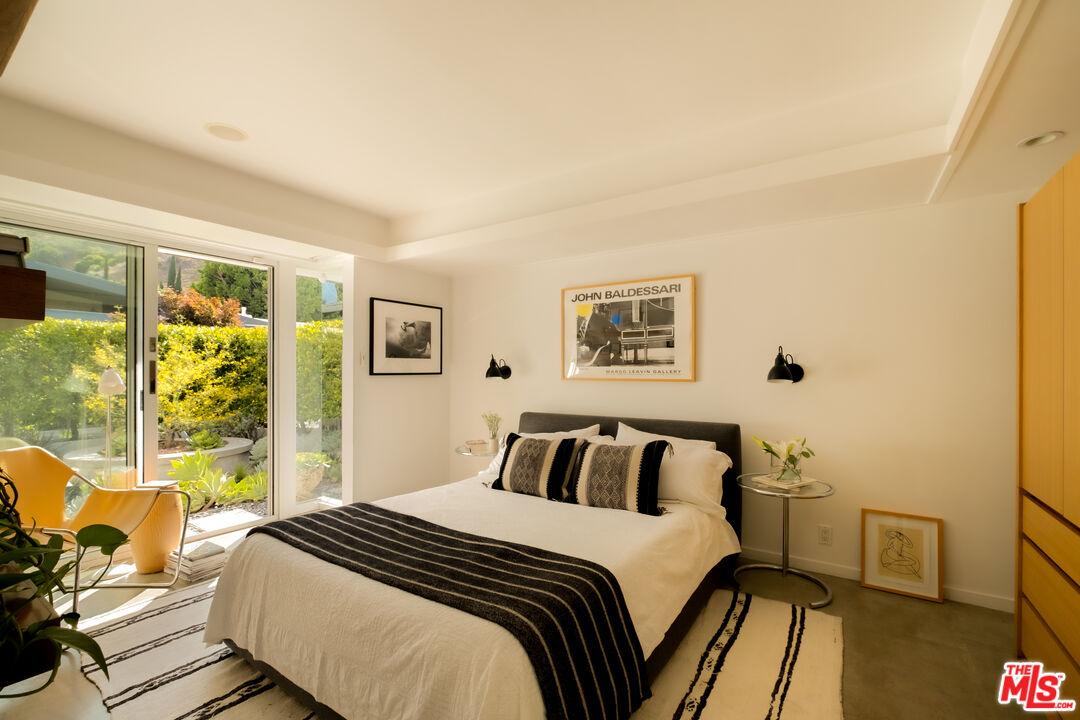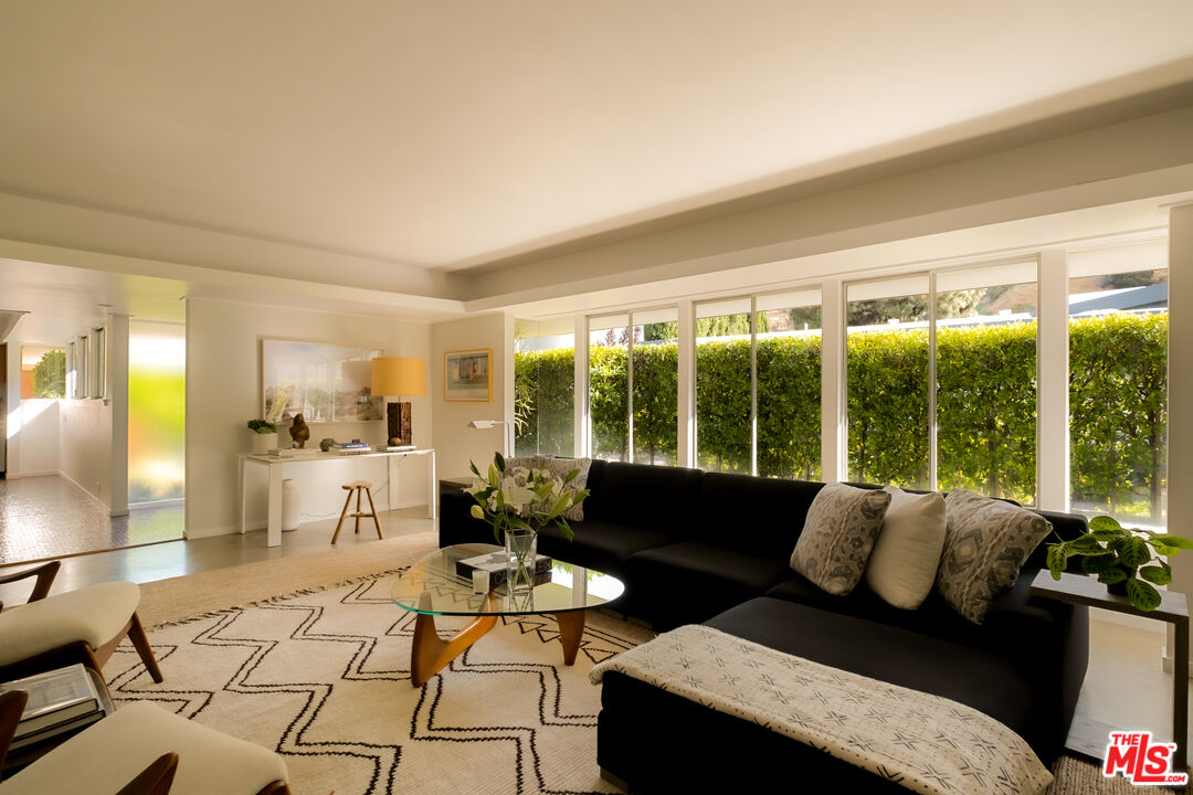 Property is also available for sale. Tucked at the end of a quiet cul-de-sac in the prestigious Outpost Estates, this rare Mid-Century Modern residence is a work of architectural heritage and timeless design. Conceived by notable architect, Dennis Wehmueller, a protge of Frank Lloyd Wright and the architect behind the Los Angeles Municipal Art Gallery among other well-known post war projects. This home reflects the principles of organic modernism seamlessly merging structure, landscape, and light. Sensitive updates preserve the integrity of its original design while enhancing comfort with today's refined luxuries.The property is situated just minutes from Hollywood and the Sunset Strip, yet profoundly removed from the city below. Set behind tall, mature hedges, the home functions as its own private sanctuary. The interiors boast garden views from every vantage, drawing you outward and inspiring private outdoor entertaining. Walls of glass dissolve boundaries between interior and exterior, flooding the living spaces with natural light and framing panoramic views of Runyon Canyon and the surrounding hills. Inside, authentic modernist details polished concrete floors, custom cabinetry and Bisazza tile, combined with radiant-heated floors, coved lighting, and custom built-ins to create a warm, sophisticated environment. The open plan flows effortlessly from the living room with fireplace to the dining area and sleek kitchen, extending out to a covered terrace for year-round indoor/outdoor living.Electronic window shades, an advanced media system, and a two-car attached garage add ease and modern functionality. Surrounded by lush landscaping and tree top vistas, the property offers both serenity and significance a rare opportunity to inhabit a piece of Los Angeles' architectural lineage in one of its most sought-after neighborhoods.