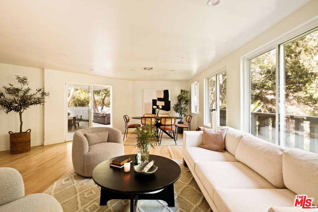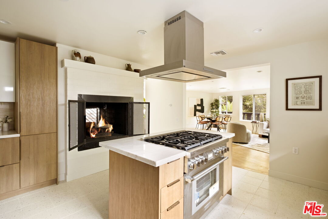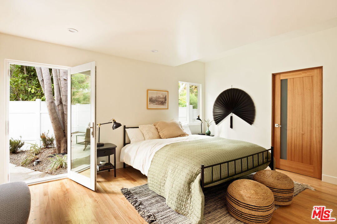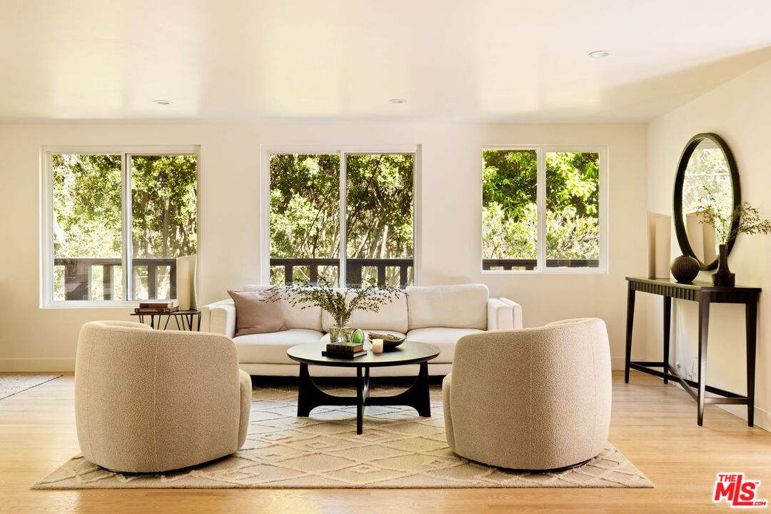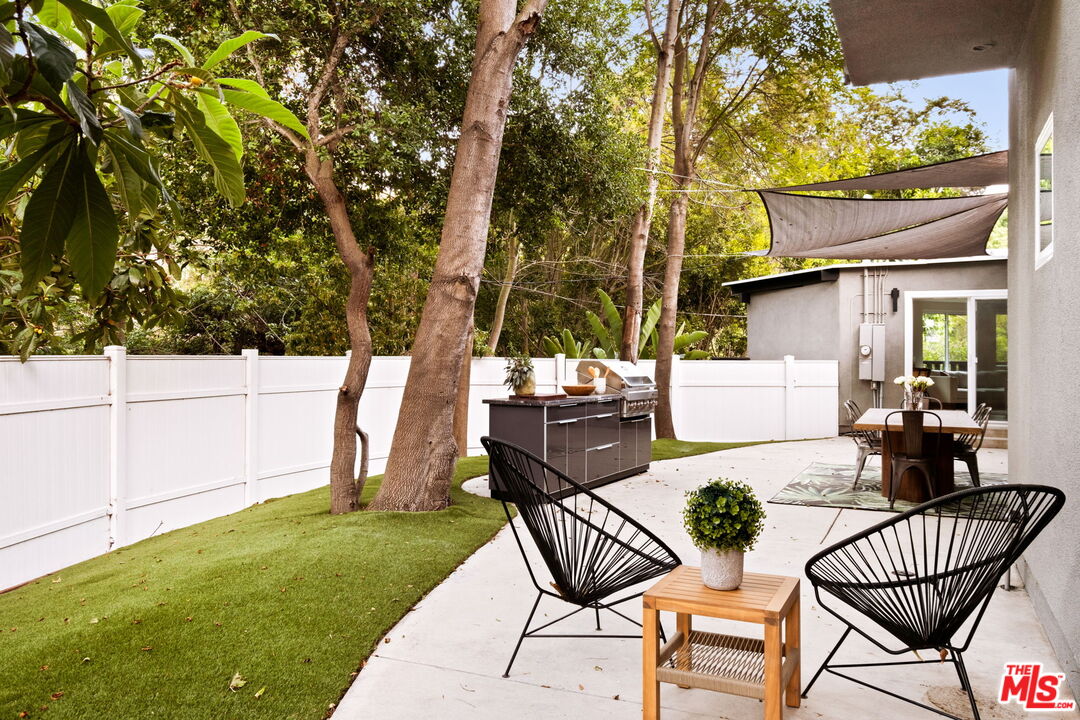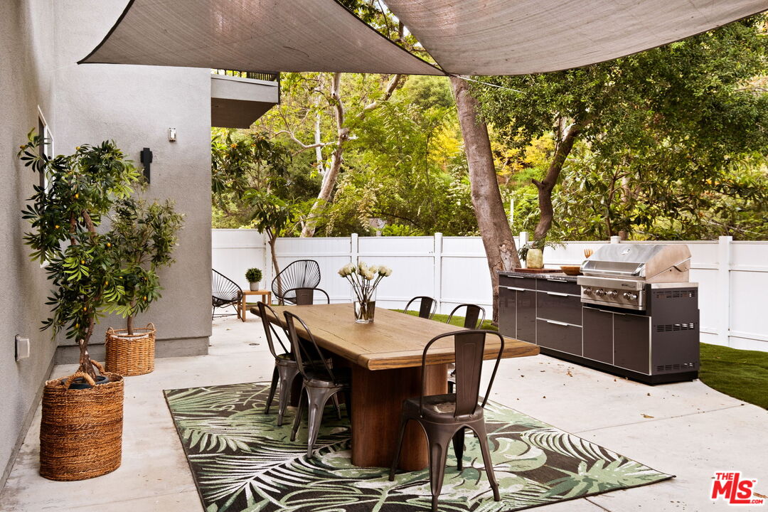 Tucked away on a quiet cul-de-sac in coveted lower Nichols Canyon, this private and scenic retreat offers the perfect blend of comfort, style, and tranquility. Surrounded by lush, mature landscaping, the home welcomes you with warmth and sophistication. Inside, you'll find 4 bedrooms and 3 bathrooms thoughtfully designed for modern living. Gorgeous white oak floors flow throughout the home, setting an elegant tone, while a cozy fireplace adds charm to the living spaces. The chef's kitchen is a true centerpiece, featuring stone countertops, sleek terrazzo floors, and a generous walk-in utility/pantry for added convenience. The versatile office opens to the front patio, providing an inspiring work-from-home setting. The serene primary suite offers a spacious walk-in closet and a spa-like bath with double vanity, creating your own private oasis. The inviting family room is perfect for relaxing or entertaining, complete with a built-in bar for seamless hosting. Step outside to multiple patio areas designed for year-round enjoyment, including a built-in BBQ, all set within a tranquil, verdant backdrop. A rare offering in one of the canyon's most peaceful enclaves where privacy, nature, and elevated living converge.