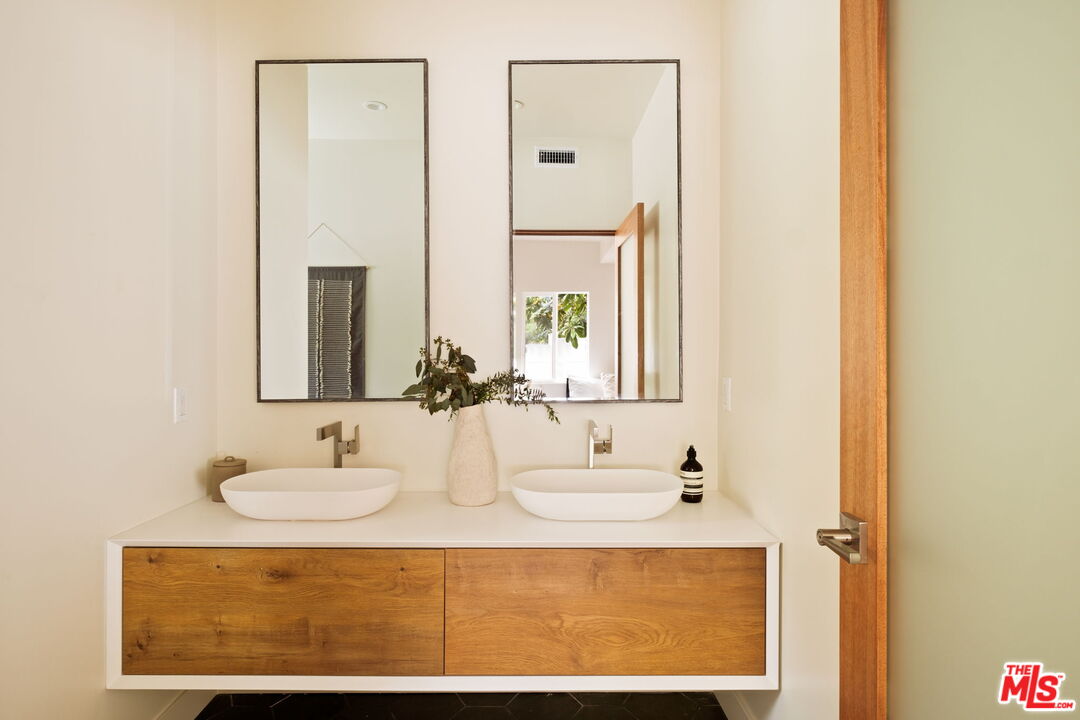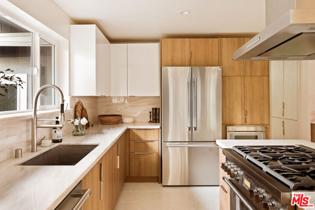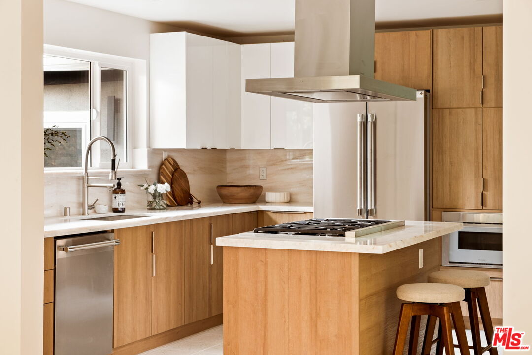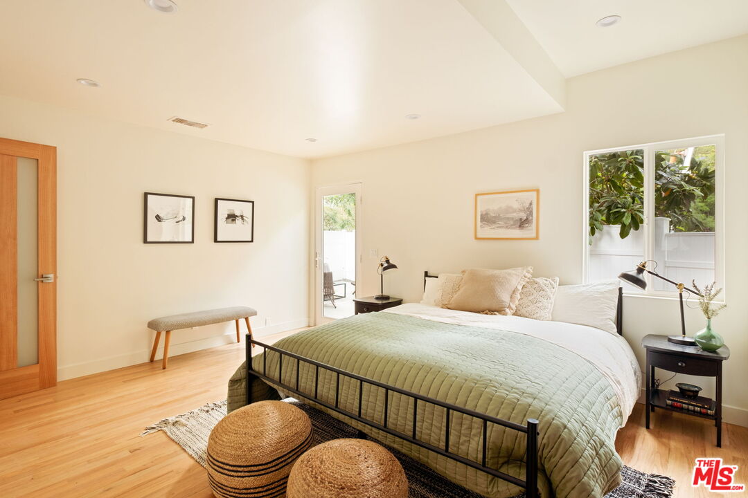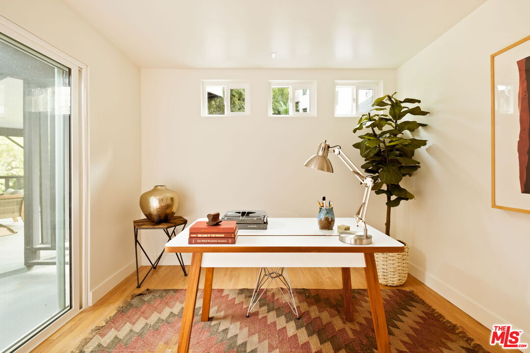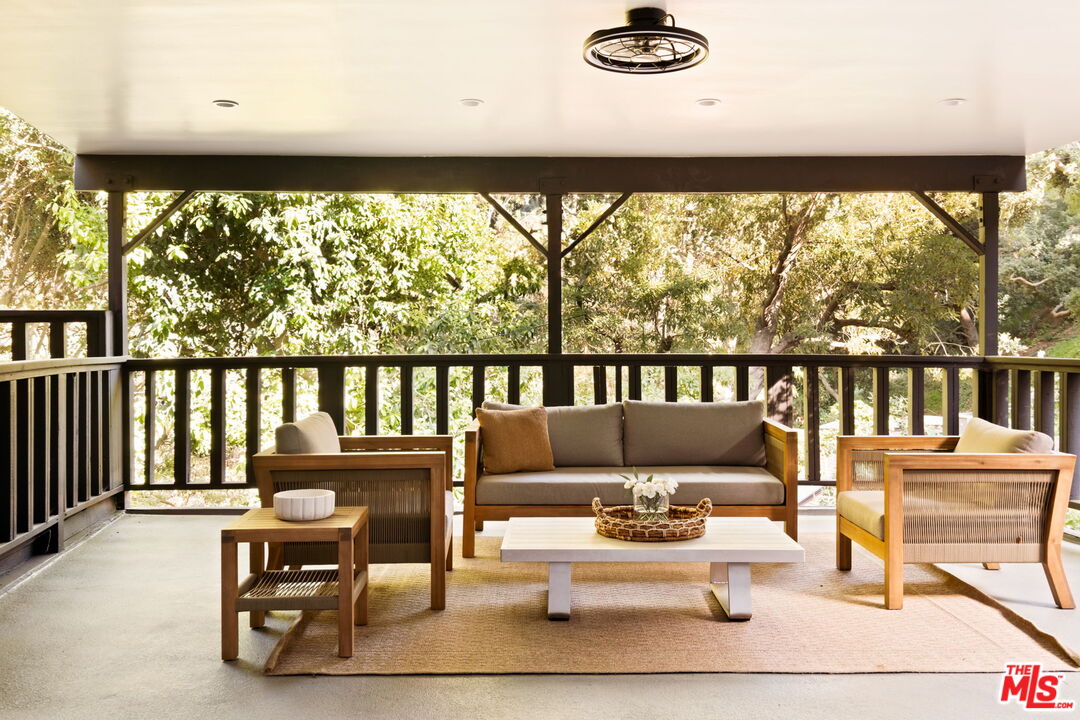 Tucked away on a quiet cul-de-sac in coveted lower Nichols Canyon, this private and scenic retreat offers the perfect blend of comfort, style, and tranquility. Surrounded by lush, mature landscaping, the home welcomes you with warmth and sophistication. Inside, you'll find 4 bedrooms and 3 bathrooms thoughtfully designed for modern living. Gorgeous white oak floors flow throughout the home, setting an elegant tone, while a cozy fireplace adds charm to the living spaces. The chef's kitchen is a true centerpiece, featuring stone countertops, sleek terrazzo floors, and a generous walk-in utility/pantry for added convenience. The versatile office opens to the front patio, providing an inspiring work-from-home setting. The serene primary suite offers a spacious walk-in closet and a spa-like bath with double vanity, creating your own private oasis. The inviting family room is perfect for relaxing or entertaining, complete with a built-in bar for seamless hosting. Step outside to multiple patio areas designed for year-round enjoyment, including a built-in BBQ, all set within a tranquil, verdant backdrop. A rare offering in one of the canyon's most peaceful enclaves where privacy, nature, and elevated living converge.