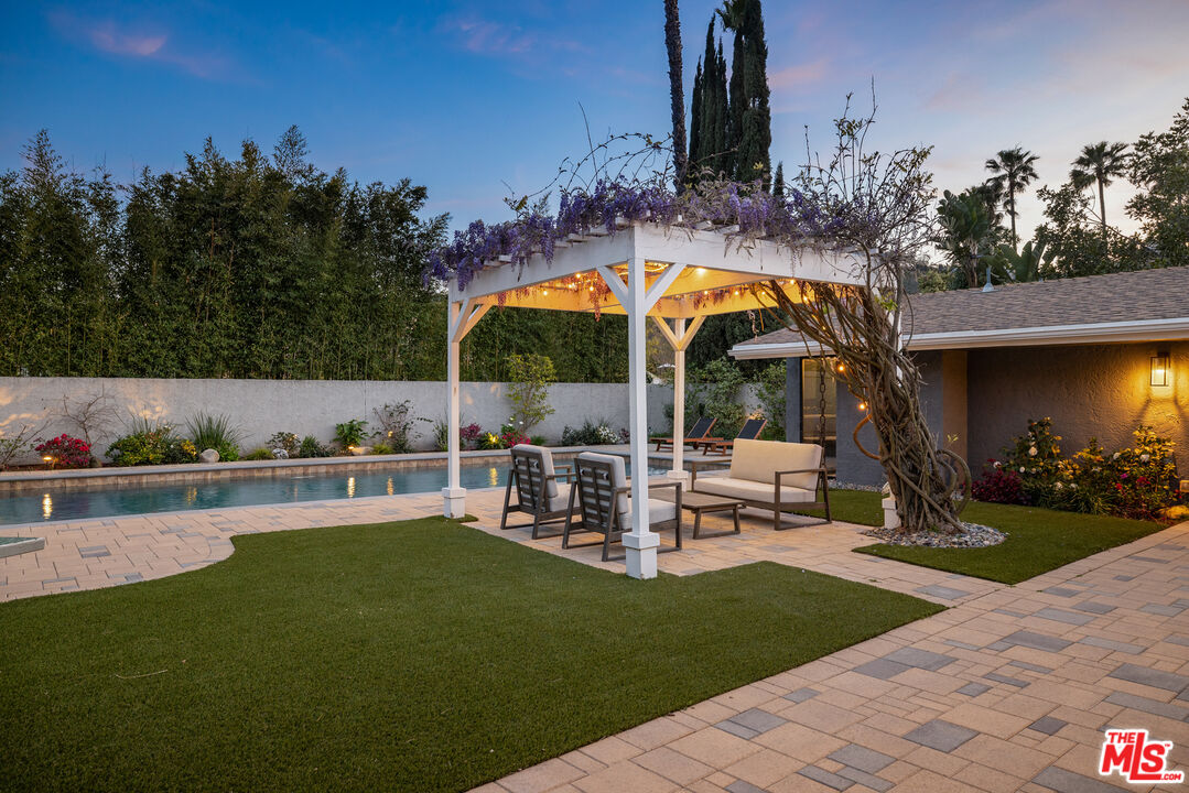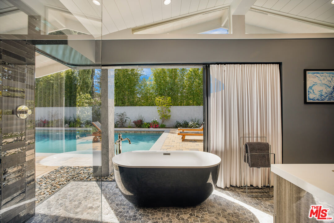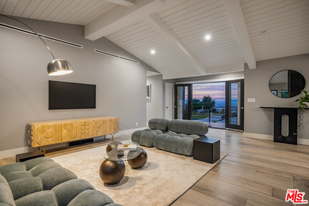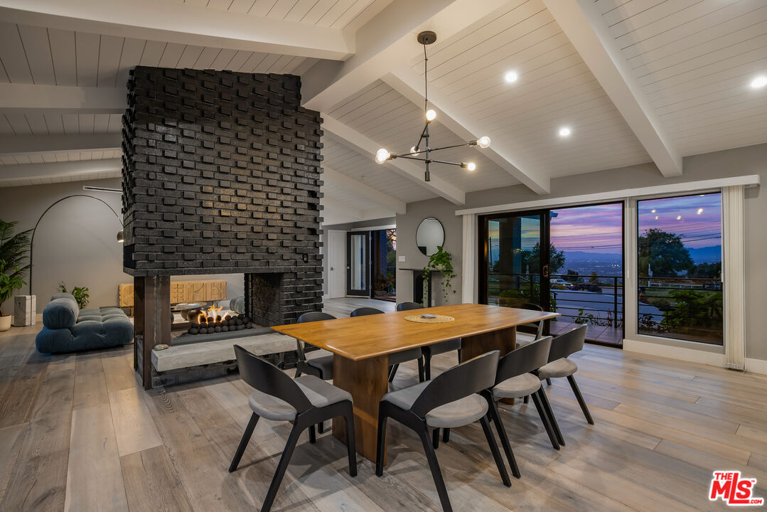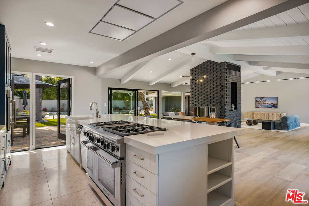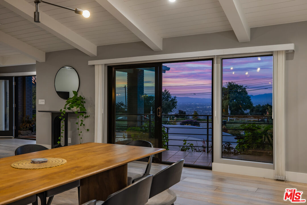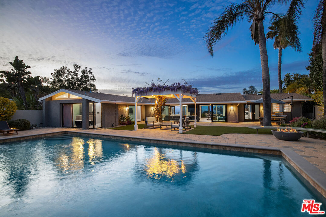 Available for Immediate Lease. This beautifully redone one-story Modern is located in the sought-after enclave of Laurel Canyon, known as Laurel Hills. Sited just above Mulholland Drive, this gorgeous home offers sensational views of the San Fernando Valley and beyond. Enter into a spacious open floor plan, boasting vaulted ceilings and large sliding glass doors, affording an abundance of natural light to flood in from front to back. The main spaces are comprised of a living room, dining room connected by a double-sided fireplace. One of the best facets of this property is its designer chef's kitchen (featured on Valerie Bertinelli's Food Network show, "Valerie's Home Cooking" for the past three seasons), featuring top-of-the-line stainless steel appliances, (including a Sub-Zero refrigerator, three ovens, and quartz countertops). The west wing of the property is where one finds a spectacular primary suite, featuring a large walk-in closet, custom built-ins and a stunning bathroom. Also to the west are two generously-sized guest bedrooms with a shared bathroom. A fourth bedroom is positioned separately to the east side of the house and functions perfectly as an office, if desired. Outside, the private backyard oasis boasts mature landscaping, a fire pit with built-in seating and a large swimmers pool perfect for outdoor gatherings. Readily accessible to many shops and restaurants on both the Westside and Valley side of the hills, as well as wonderful nearby hiking trails such as Fryman and Runyon Canyons. This property exudes quintessential California living. Parking is a breeze with a two-car garage and ample space for more in the semi-circular driveway. This thoughtfully designed home offers true luxury, in a prime location, and checks all the boxes for the most discerning tenants.